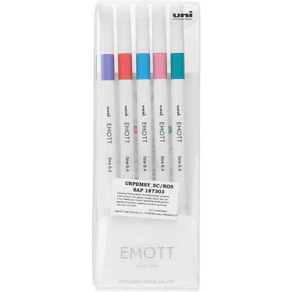 • Cienkopisy Uni Emott No.5 0.4mm 5 kolorów