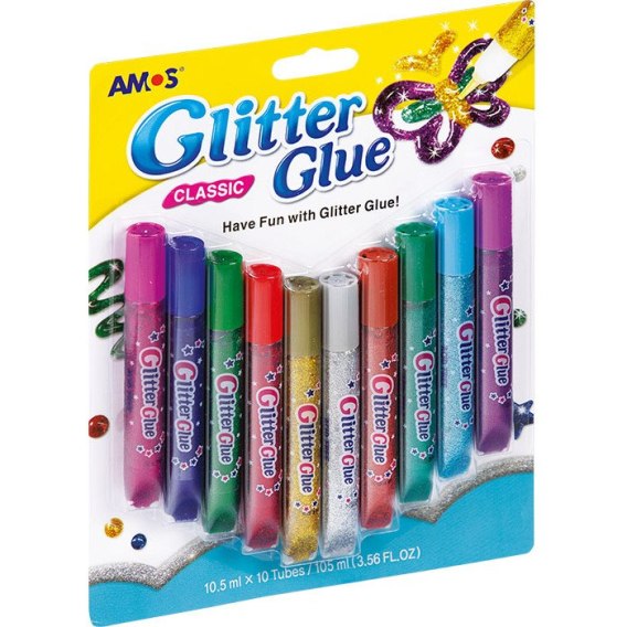 KLEJ Z BROKATEM AMOS 10,5ml*10 KOLORÓW