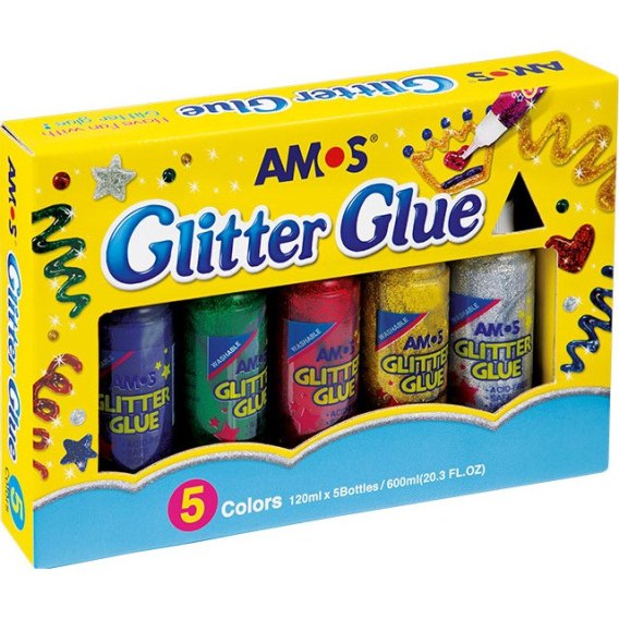 KLEJ Z BROKATEM AMOS 120ml*5 KOLORÓW