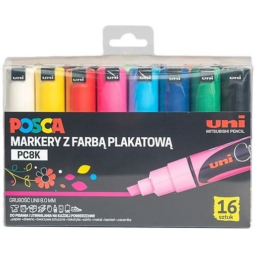 Markery z farbą plakatową Uni POSCA PC-8K 16 kolor