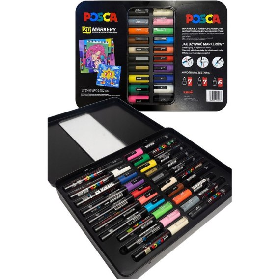 • Markery z farbą plakatową Uni POSCA zestaw (20)