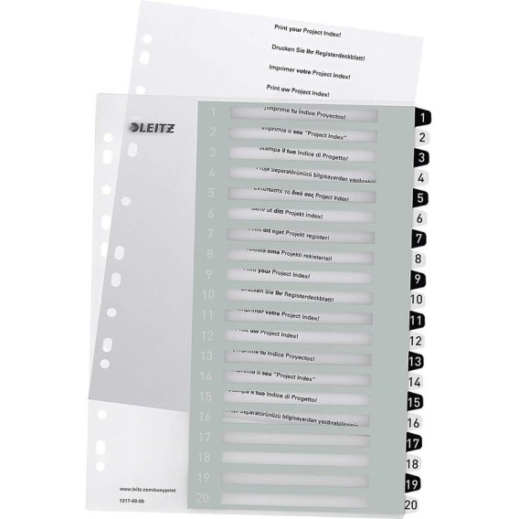 Przekładki PP Leitz Wow A4 Maxi A4 1-20 (do nadruku) biało-czarne