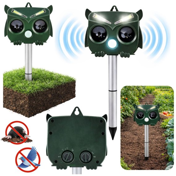 Solarny Odstraszacz Zwierząt Sowa Czujnik Ruchu Ultradźwięki Diody LED
