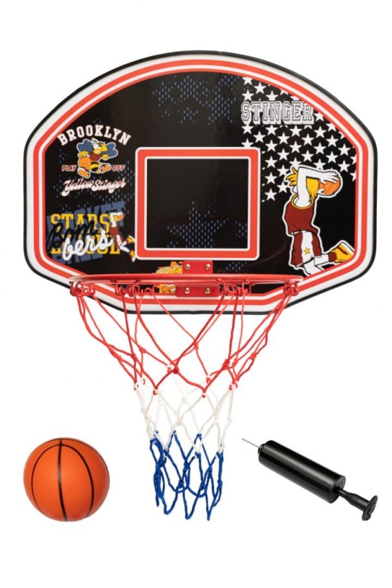 Tablica do koszykówki SPARTAN 60 x 44 cm - model rekreacyjny z tablicą i stalową obręczą, odpowiedni do montażu na drzwiach. Piłka, pompka i siatka w zestawie.