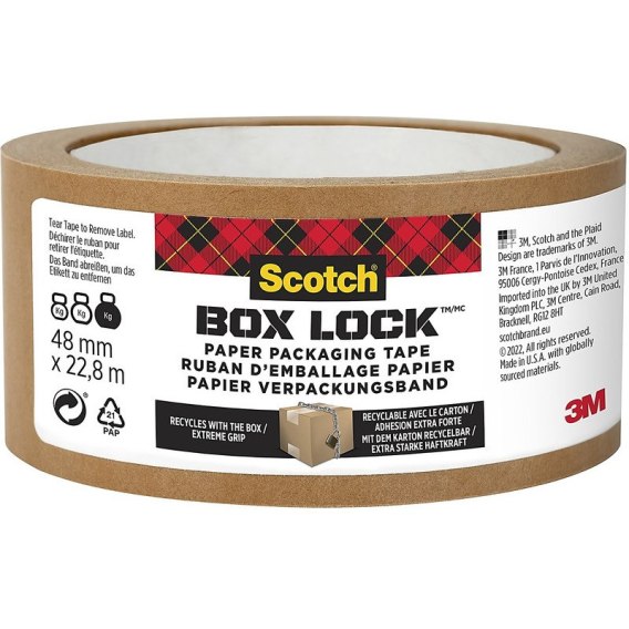 * papierowa taśma pakowa ScotchŽ Box Lock o ekstremalnej przyczepności, aby zapewnić szczelność przesyłki