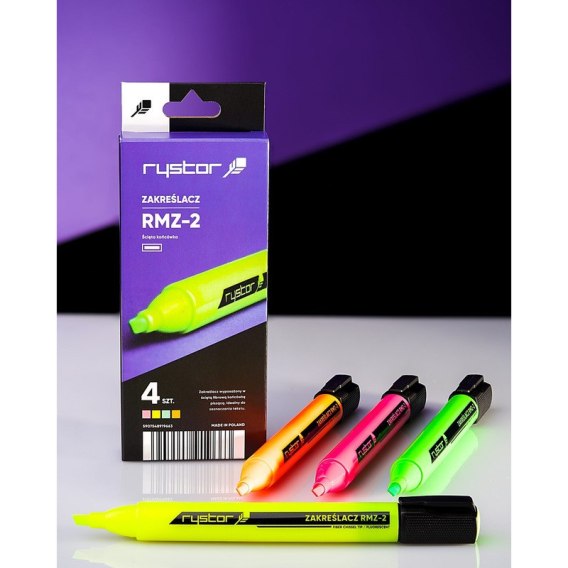 * zakreślacz wyposażony w ściętą fibrową końcówkę piszącą