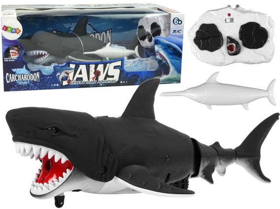 Zabawka wykonana jest najwyższej jakości plastiku. Każdy detal, charakterystyczne białe zęby, ostra płetwa na grzbiecie, długi ogon budzą grozę. Super zaletą jest zdalne sterowanie na podczerwień. Za pomocą pilota można nim sterować. Podczas zabawy porusza ogonem i całą talią, świecące oczy i sposób poruszania przypomina prawdziwego rekina. Największą niespodzianką jest funkcja spryskiwacza wodą. Na grzbiecie znajduje się otwór, do którego należy wlać wodę, załączoną pipetą w kształcie miecznika, po naciśnięciu przycisku na pilocie, rekin zacznie poruszać głową i używać spryskiwacza.